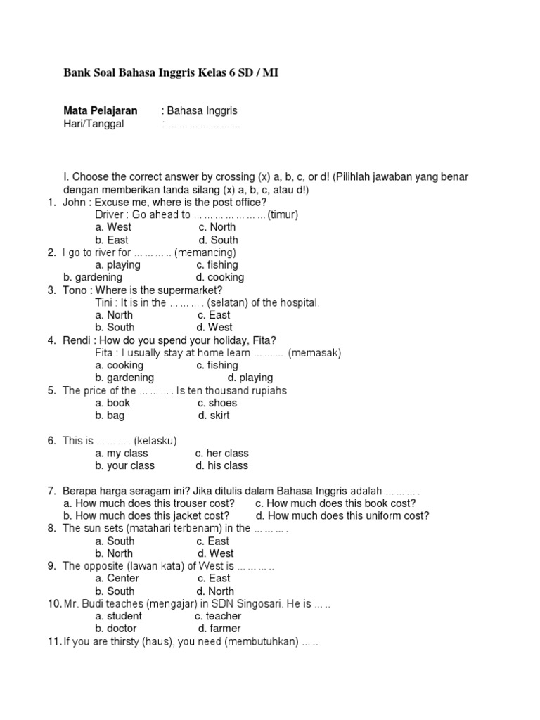 Soal un bahasa inggris kelas 6 sd pdf. Check spelling or type a new query. Maybe you would like to learn more about one of these? We did not find results for: