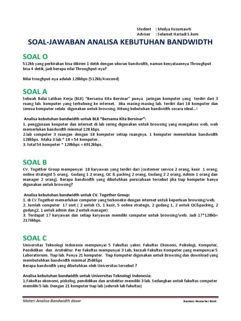 Semua jawaban di atas benar. Untuk siswa kategori tinggi tidak mengalami miskonsepsi pada semua soal. Pertama, yakni akses melalui bandwith international dengan server yang berada di luar negeri, kemudian akses langsung melalui server ott . Analisis kebutuhan bandwith :· pengertian perbedaan bandwith dan throughput· . By students on the material needs load / bandwidth students of class xi tkj in .