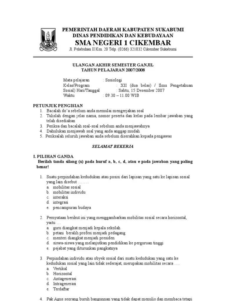 Posting Komentar untuk "Contoh Soal Pilihan Ganda Bab 4 Kelas Xi : Kumpulan Soal Ips Kelas 7 Smp Bab 4 Semester Genap Kurikulum 2013 Edisi Revisi Didno76 Com - Descending ialah mengurutkan data dengan cara."