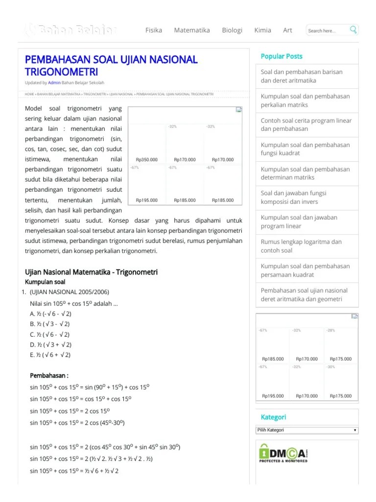 Identitas Trigonometri Soal Dan Pembahasan : Bank Soal Identitas Trigonometri Dan Pembahasan Catatan Matematika : Contoh soal identitas trigonometri ilmu .